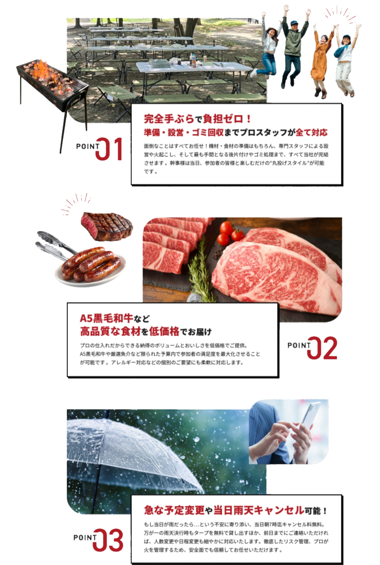 様々なイベント・行事でBBQデザインのケータリングサービスをご利用いただけます。
